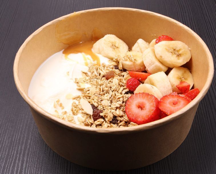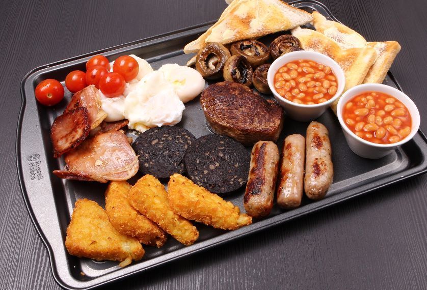 Full English Breakfast, Muffins, Pancakes and Greek yogurt bowls with all the trimmings.